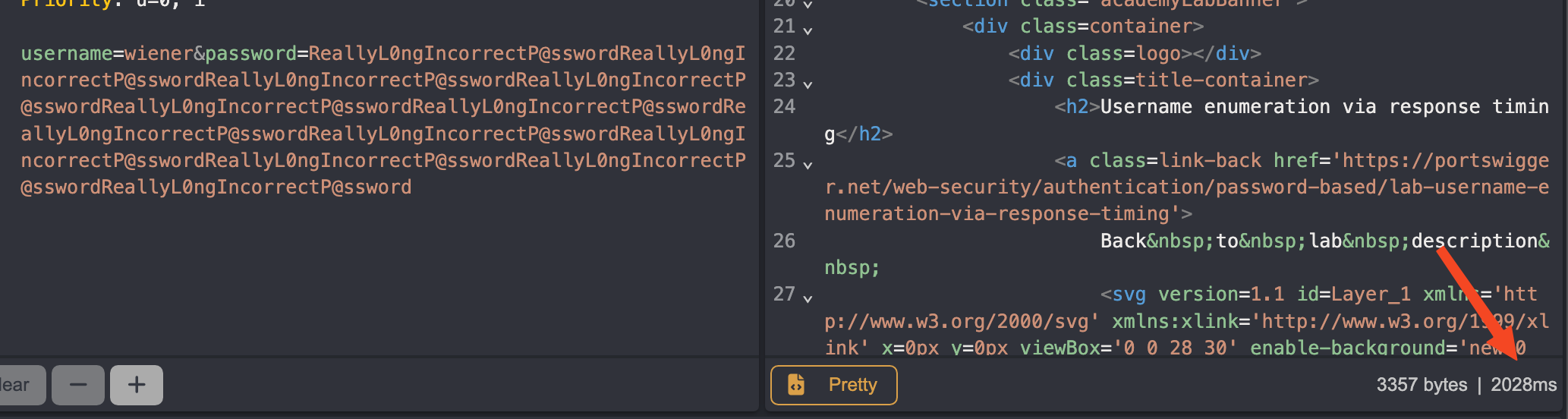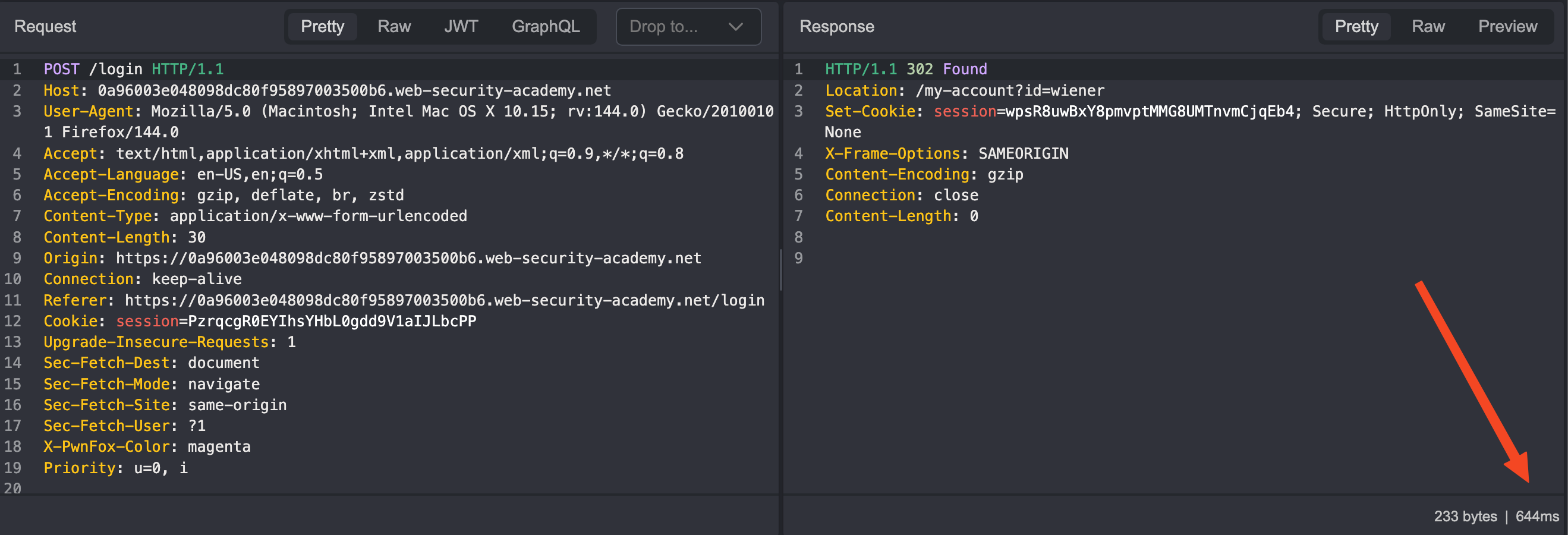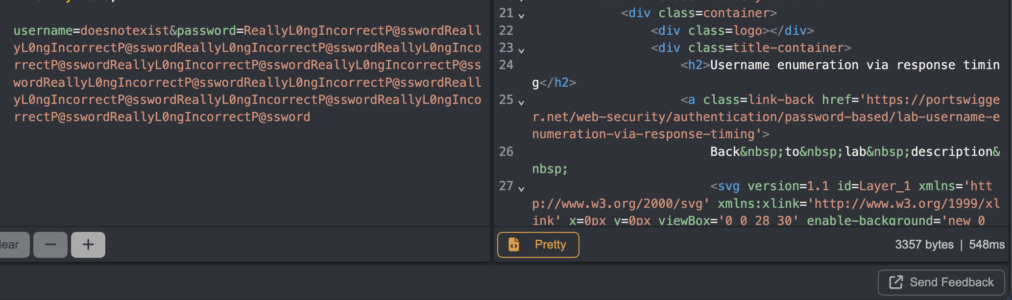 This lab is vulnerable to username enumeration using its response times. To solve the lab, enumerate a valid username, brute-force this user's password, then access their account page.