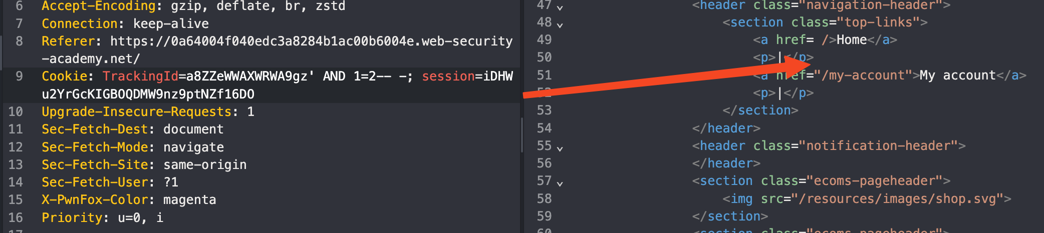 Cookie: TrackingId=DEJ3vcjdRcpt0BQs' AND (SELECT 'a' from users WHERE username='administrator')='a; session=Ka4zPIbsWJdLRywMh51LGEWpkKh0SaRV