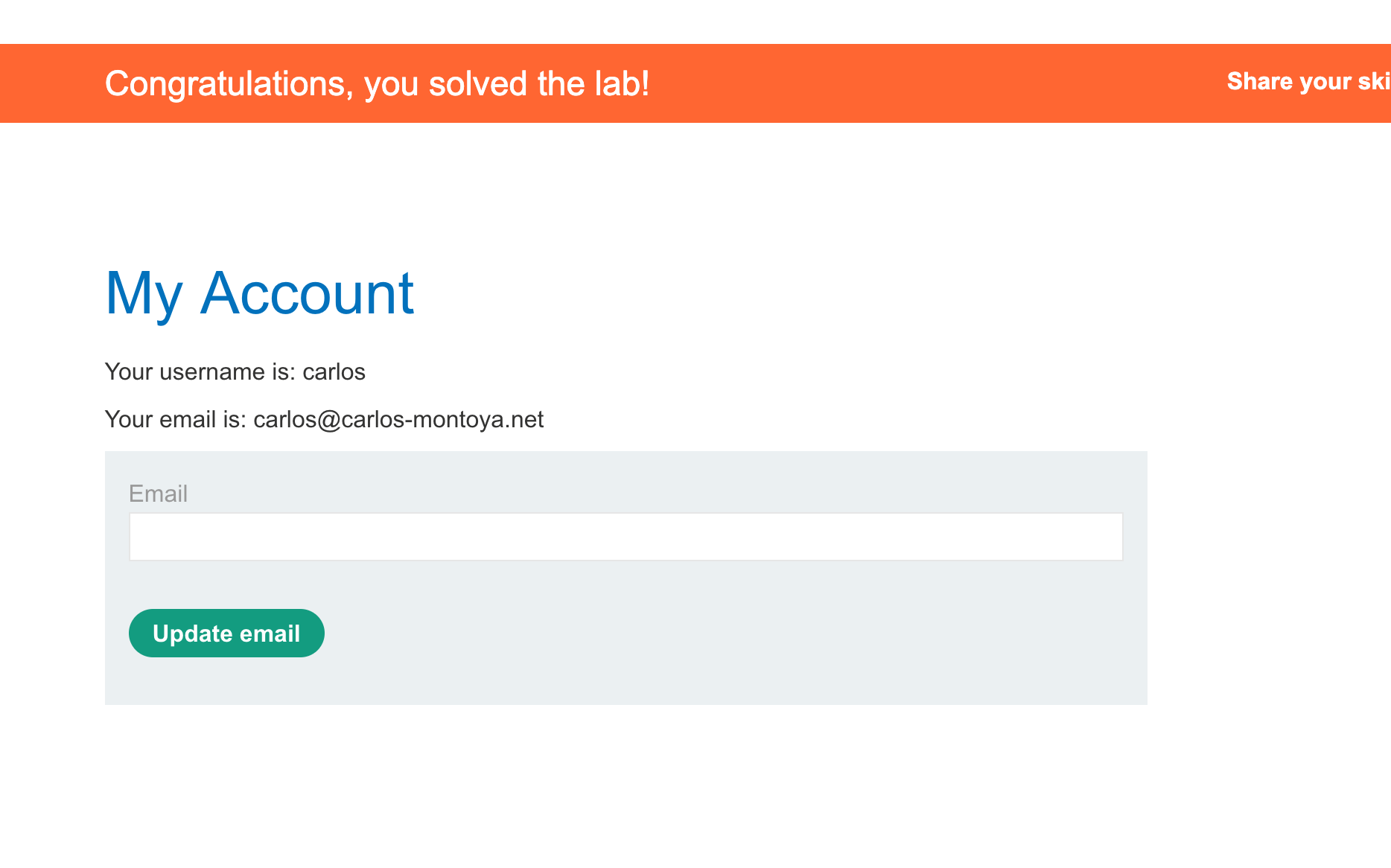 Now you can log in as Carlos and solve the lab.