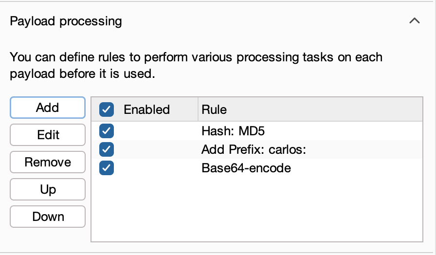 Send the request for /my-account to intruder. Change the id to carlos, and set a placeholder around the stay-logged-in cookie. Make sure to remove the session token from the intruder request.